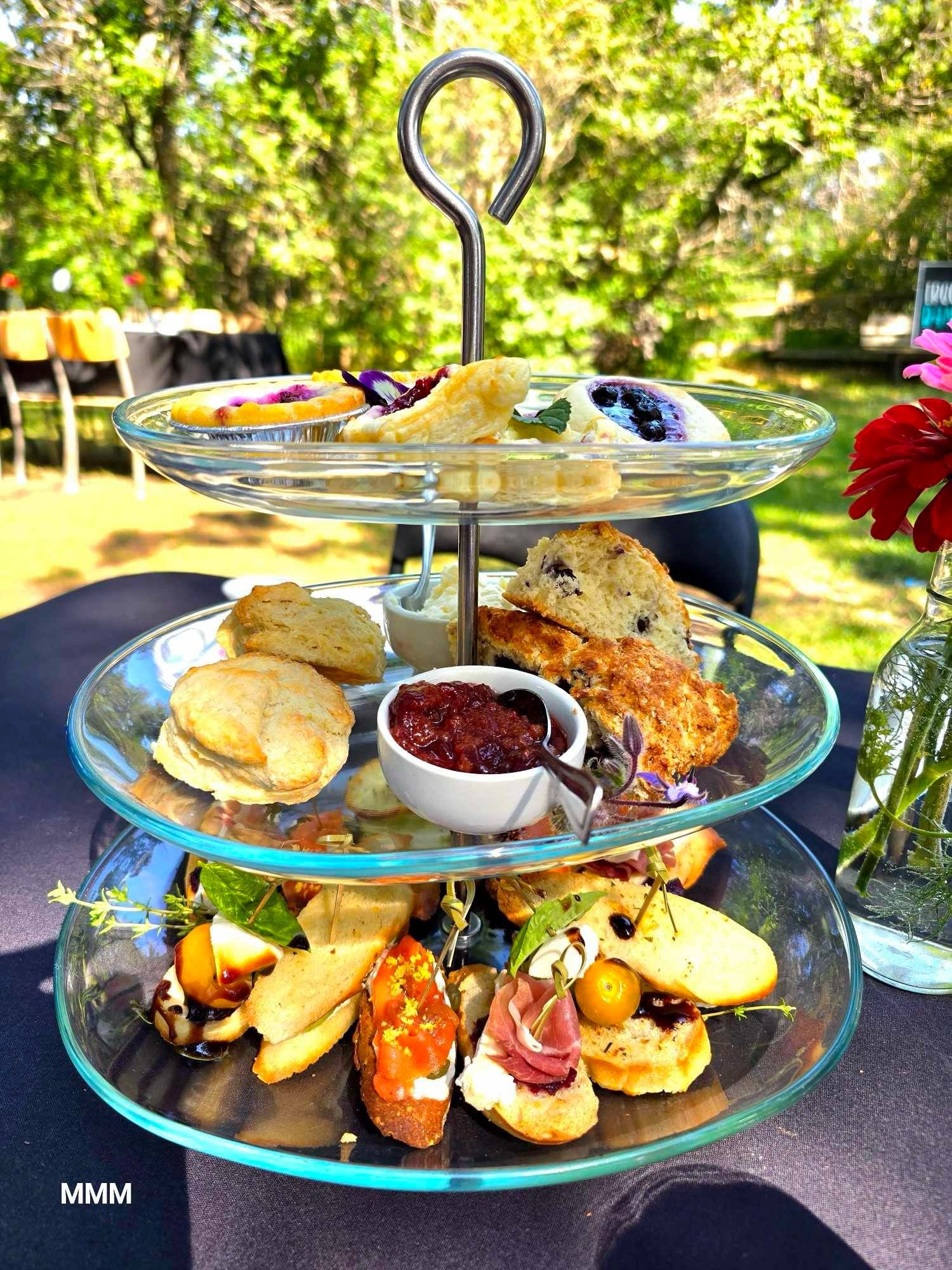 Featuring finger sandwiches, sweet dainties, fresh made scones and real clotted cream.