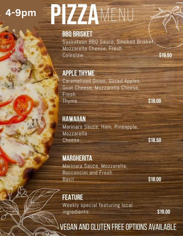 Join us for scrumptious pizzas Saturdays 4-9pm