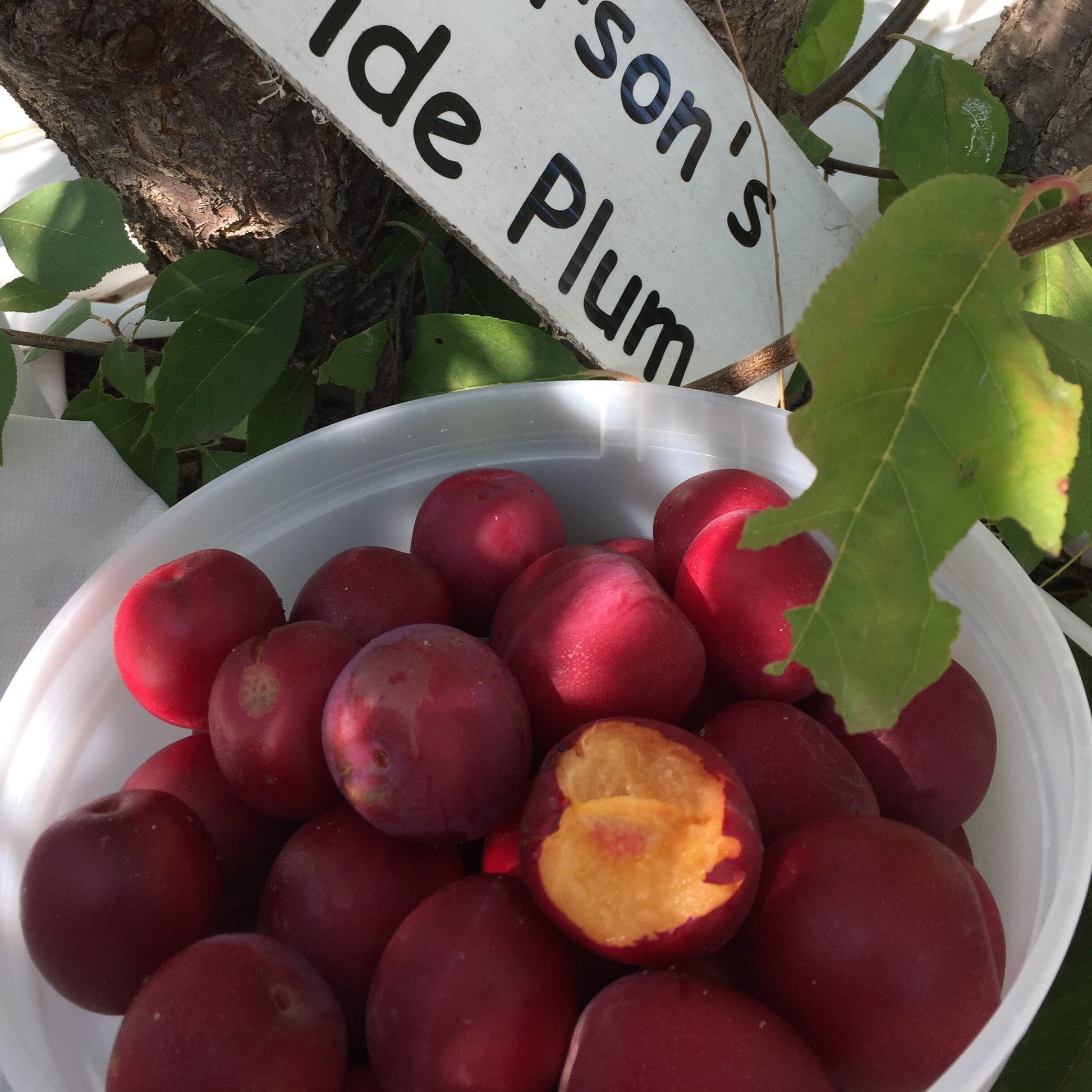 An incredible plum for the prairies, this fruit has a brilliant red skin with a bright, golden flesh. The tree is of excellent quality and is a heavy producer with a beautiful, unique weeping form that is sure to add to any garden. Stake the leading branch to choose the height you would like this weeping variety to grow to. This is a hybrid plum and it requires a wild plum to have fruit. Its fruit are large (4.5 centimeters) sweet and juicy. It matures the latest of the plums in the prairies; mid-September. excellent for eating fresh, freezing, jams, jellies and canning, fair for pie. This tree was developed at the University of Saskatchewan and was released in 1960.