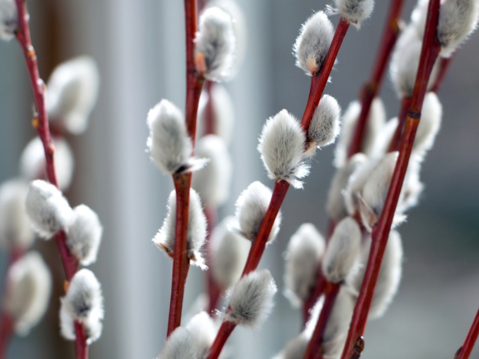 Pussy Willow is a tree known for its soft, silky catkins that emerge in spring, usually before their leaves. The catkins are a silvery grey and look like small, fluffy paws which is where the name Pussy Willow comes from!